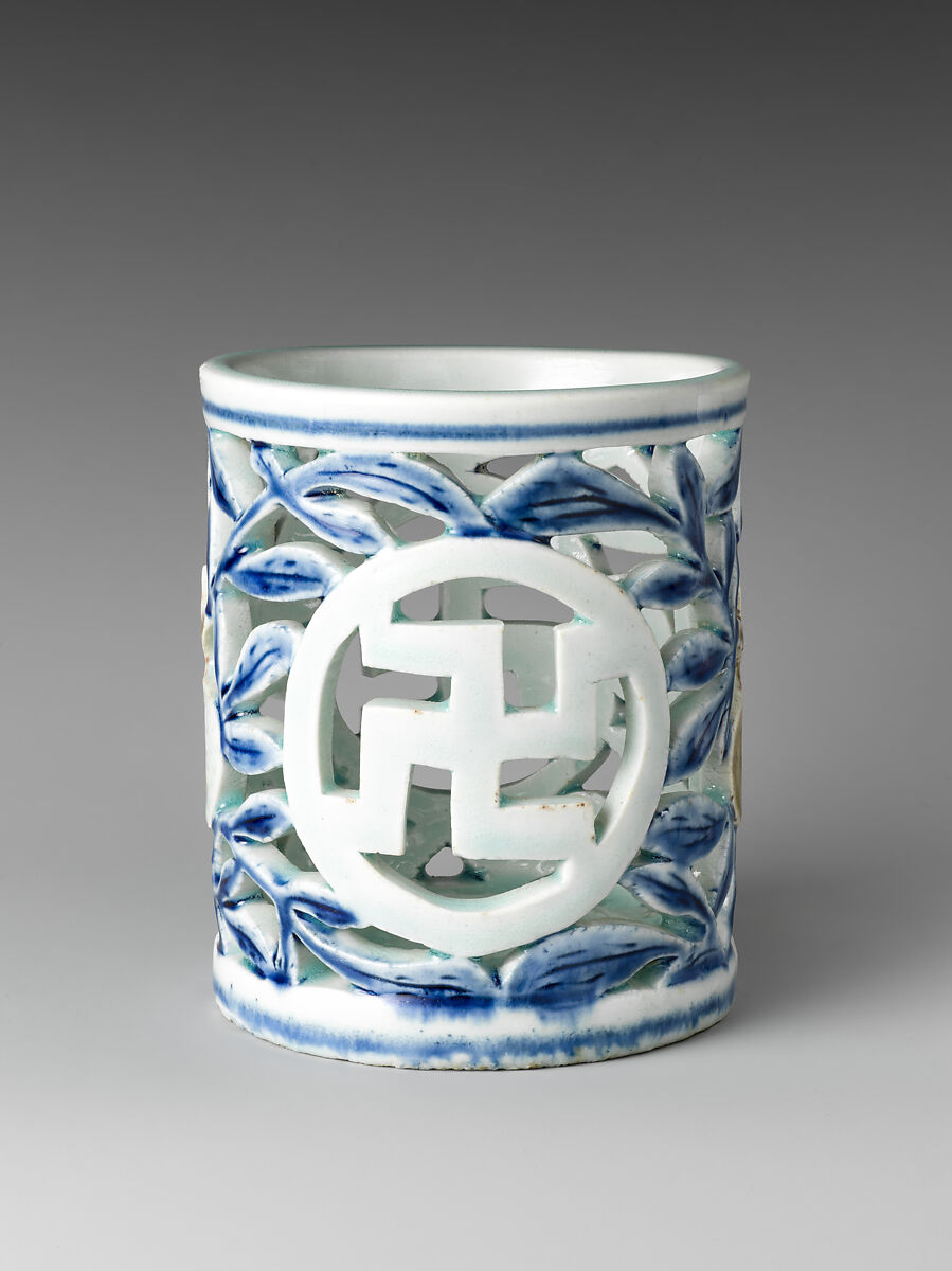 - 白磁靑畫銅畫石榴卍字文筆筒