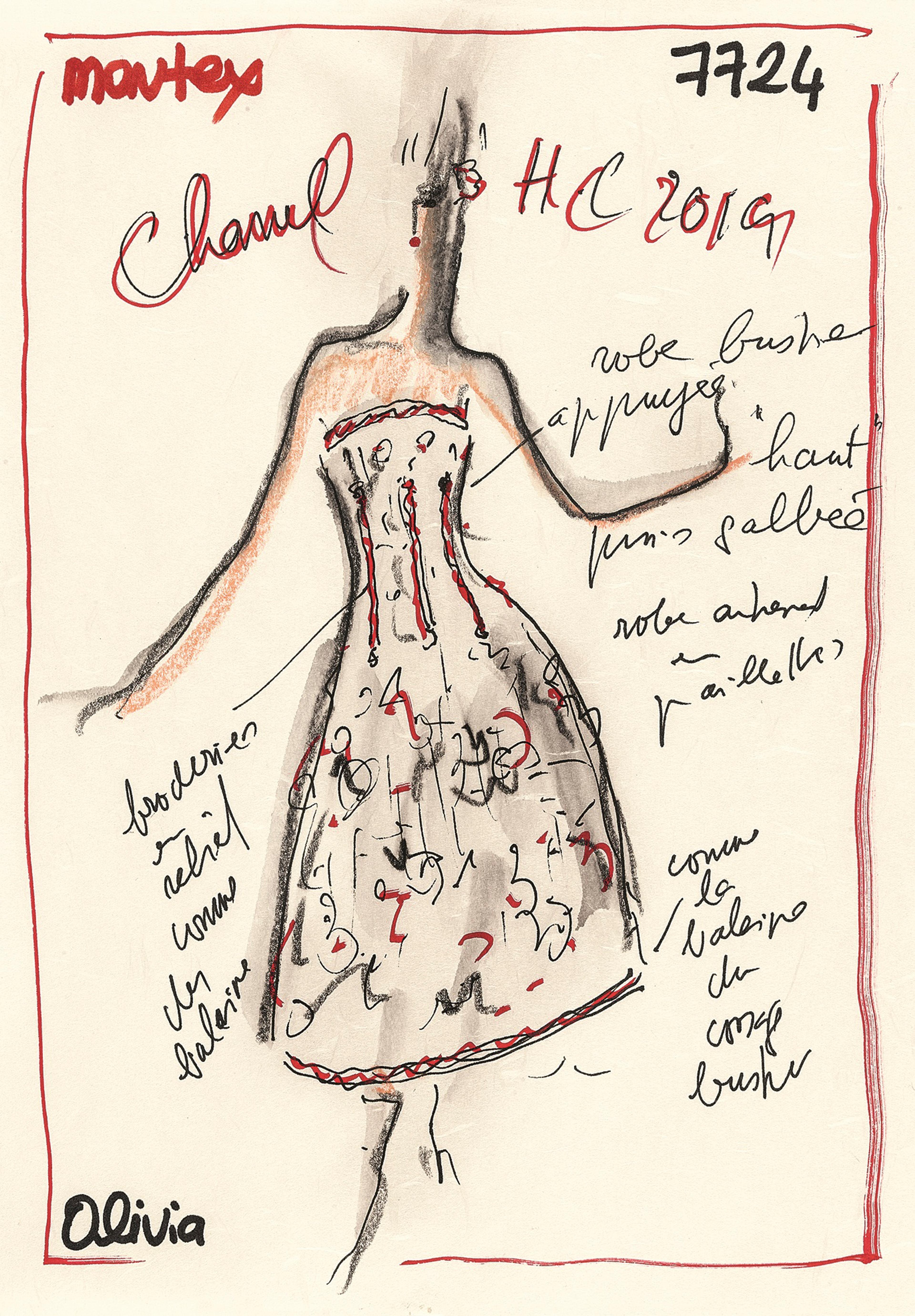 Sketch of CHANEL dress, Spring-Summer 2019 Haute Couture; Courtesy Patrimoine de CHANEL, Paris.