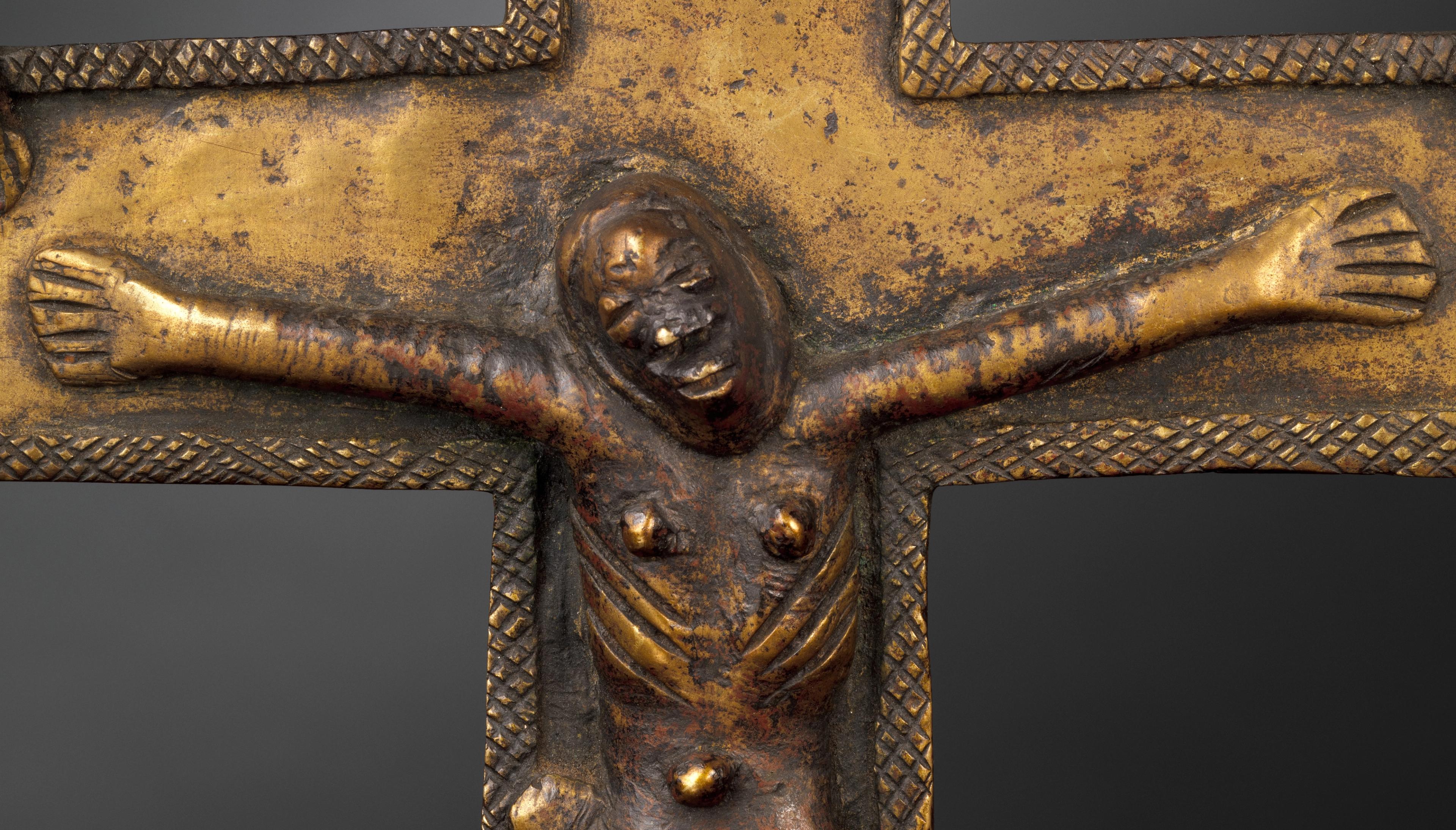 CÉCILE FROMONT: We are looking at a quintessential, beautiful Kongo crucifix that is made of brass and includes a set of characters that are really typical of the Kongo and its version of Christianity.