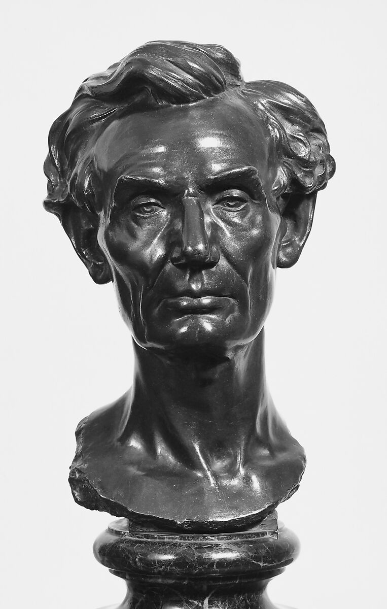 Volk met Lincoln in 1858 through his wife's cousin, Stephen A. Douglas. Lincoln, not yet President at the time, agreed to pose for the sculptor. Two years later, while Lincoln was in Chicago on legal business, he sat for Volk in his studio. In order to eliminate the need for several sittings, the artist made a life mask (Smithsonian Institution, Washington D. C.) that also became valuable to later artists who portrayed Lincoln. Volk's portrait bust depicts Lincoln deep in thought and finds its greatest strength in the simple naturalism representing a vigorous man. This example was cast in 1914 for the Metropolitan Museum by Theodore B. Starr, Inc. from a plaster copy of the 1860 bust.