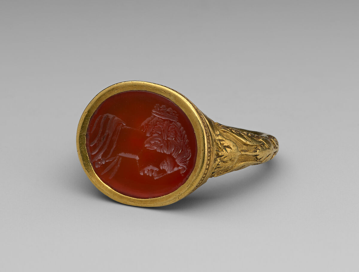 - Title: Head of a Maiden intaglio set in a ring