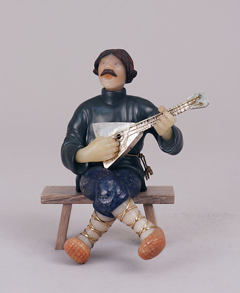 - Medium: Obsidian (probably), lapis lazuli, milk quartz and other colored semi-precious stones, two sapphires, silver and silver-gilt