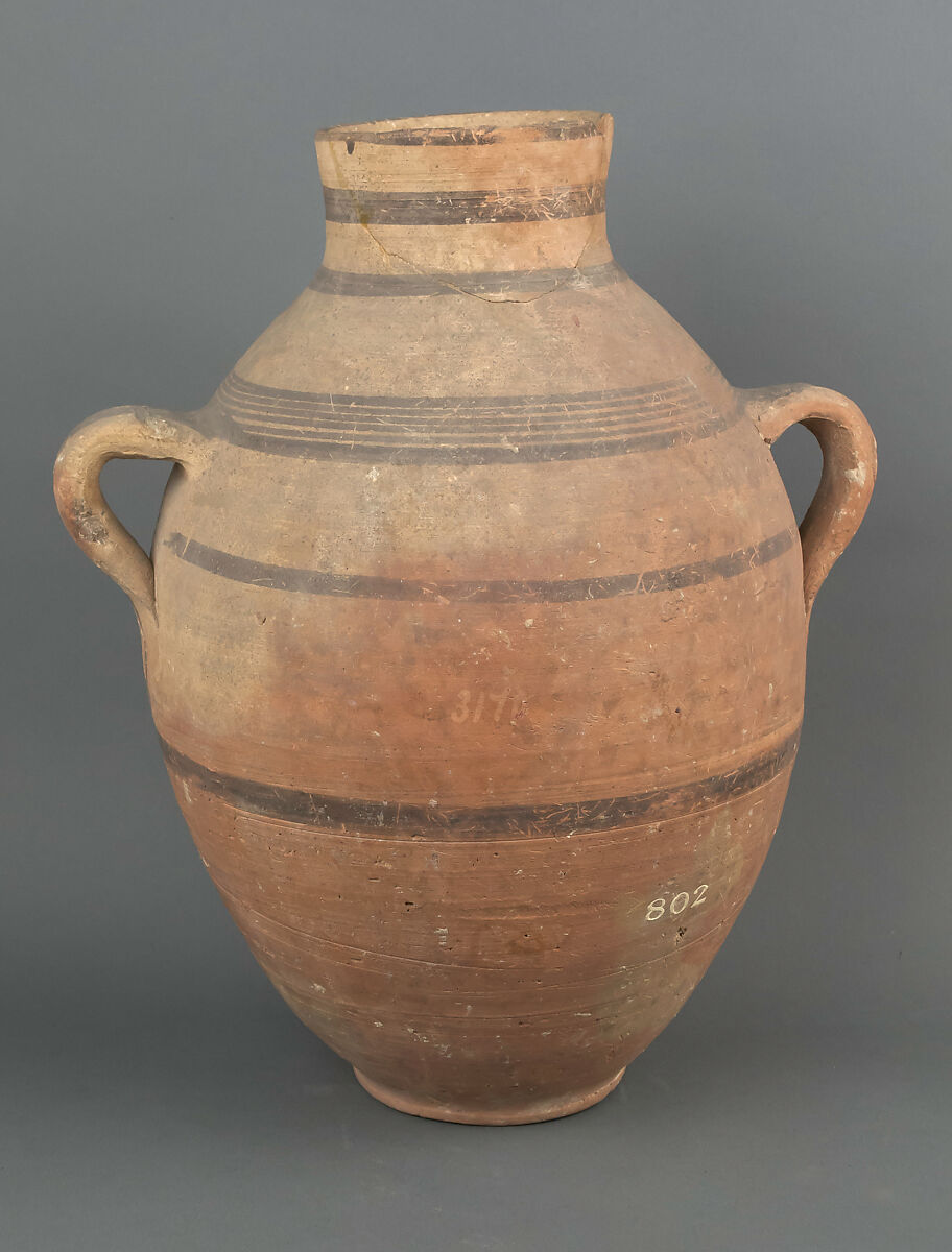 Pale red clay with horizontal black bands.