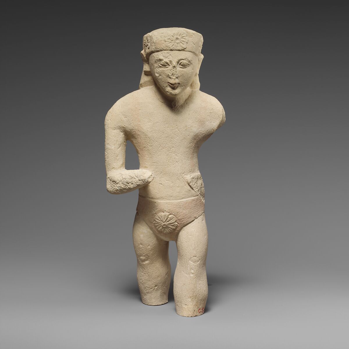 - Title: Limestone statuette of a male votary with Cypriot shorts and a diadem