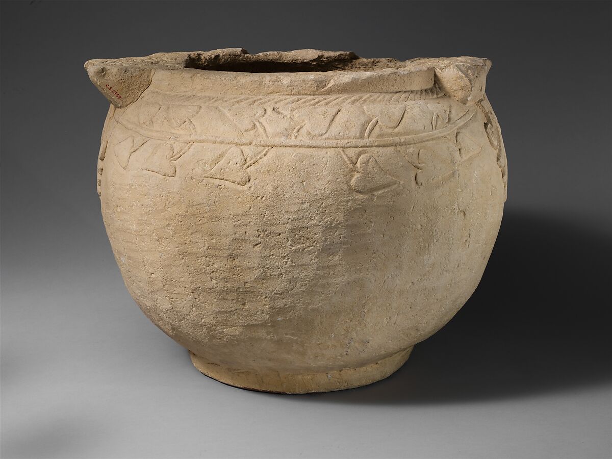 - Title: Limestone votive krater (mixing bowl)