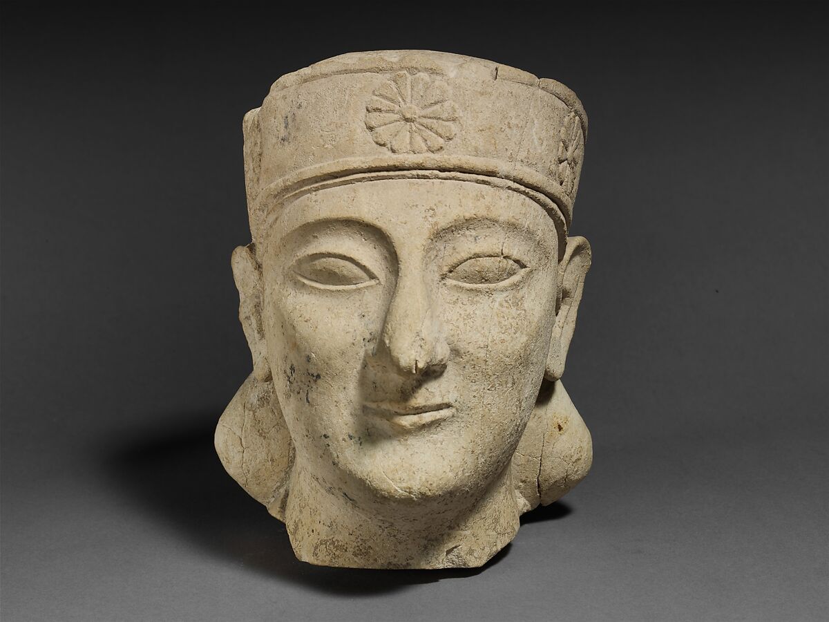 - Title: Limestone head of a beardless male with a diadem