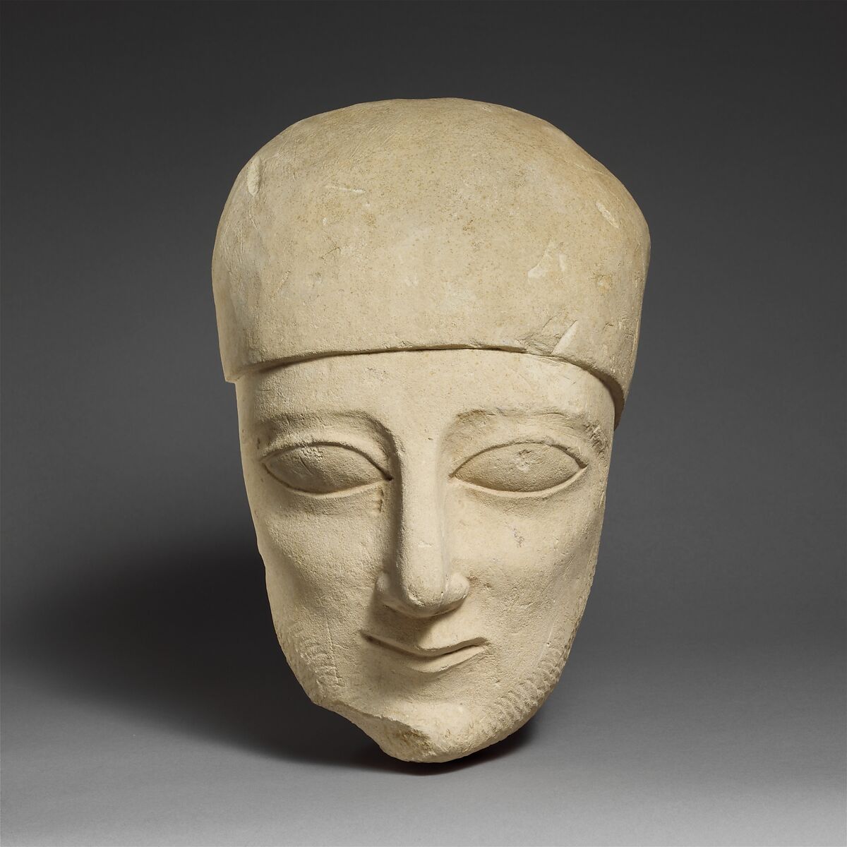 - Title: Fragment of a limestone head of a bearded male with a plain headdress