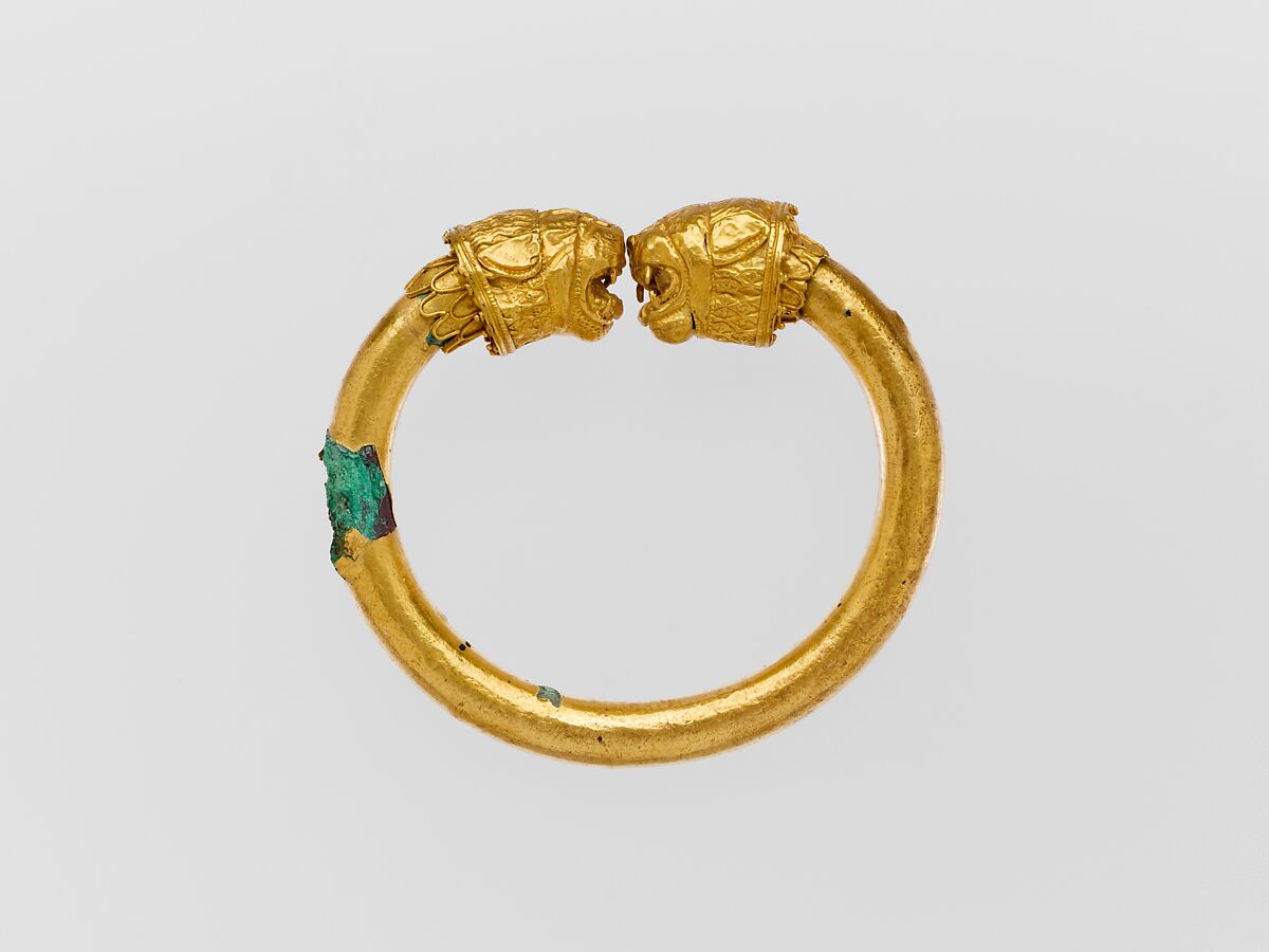 - Title: Gold and copper alloy bracelet with lion-head finials