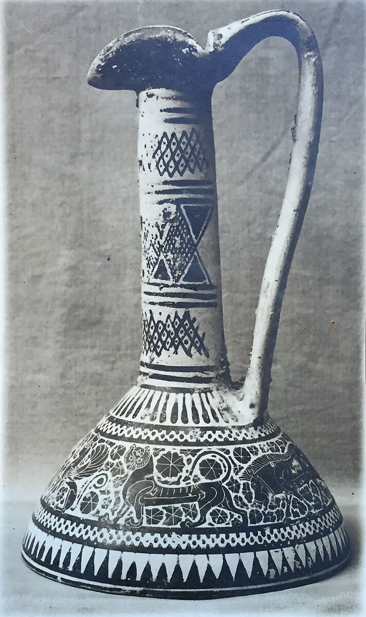 Decorated with a frieze of animals (griffin, sphinxes, panther, boar, stag, lion) and designs.