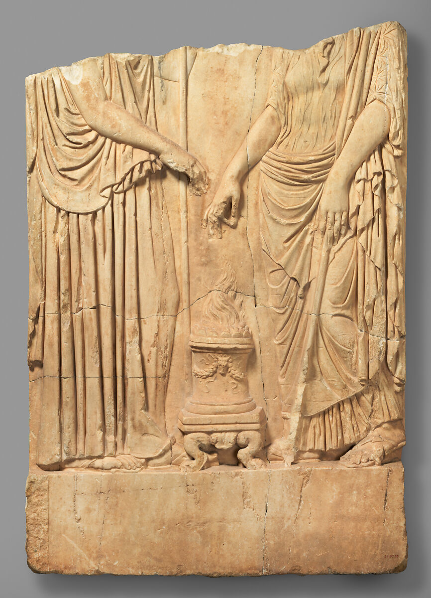 - Title: Lower part of a marble relief with two goddesses