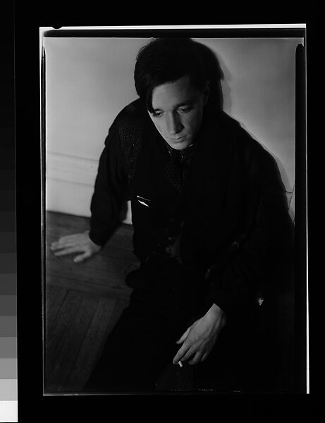 - Title: [Self-Portrait Seated on Floor Against Wall with Dark Cloth Around Neck]