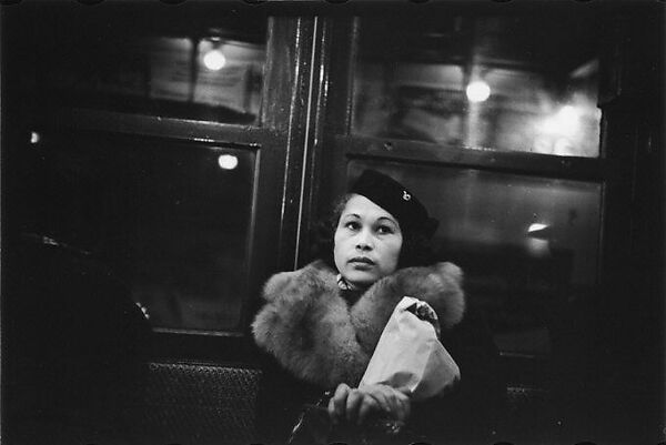 Between 1938 and 1941 Evans produced a remarkable series of portraits in the New York City subways. With a 35mm Contax camera strapped to his chest, its lens peeking out between two buttons of his winter coat, Evans was able to photograph his fellow passengers surreptitiously and at close range. Although the setting was public, he found that his subjects, unposed and lost in their thoughts, displayed a constantly shifting medley of moods and expressions-by turns curious, bored, amused, despondent, dreamy, and dyspeptic. "The guard is down and the mask is off," he remarked. "Even more than in lone bedrooms (where there are mirrors), people's faces are in naked repose down in the subway."