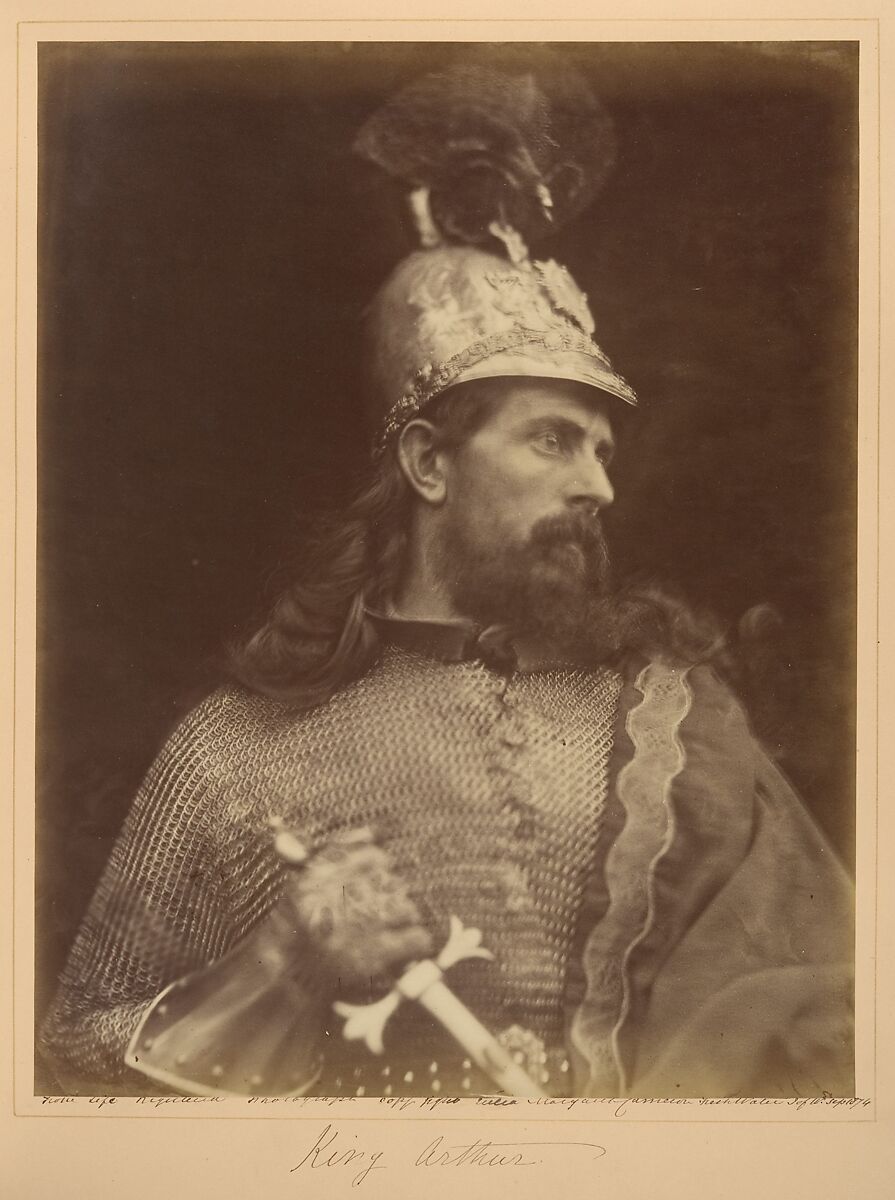 In 1874 Tennyson asked Cameron to make photographic illustrations for a new edition of his Idylls of the King, a recasting of the Arthurian legends. Responding that both knew that “it is immortality to me to be bound up with you,” Cameron willingly accepted the assignment. Costuming family and friends, she made some 245 exposures to arrive at the handful she wanted for the book. Ultimately—and predictably—she was unhappy with the way her photographs looked reduced in scale and translated into wood engravings, and she chose to issue a deluxe edition, at her own risk, that included a dozen full size photographic prints in each of two volumes.