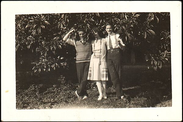 • Title: [Lucien Jacques, Georgette Maury, and André Maury Standing in Front of Foliage, Les Cyprés de St. Jean par Grasse, France]