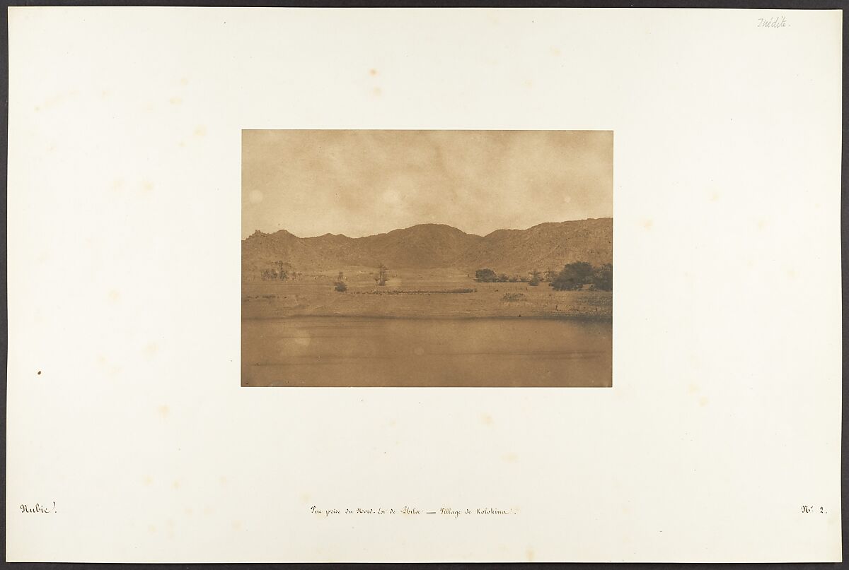 Maxime Du Camp's mission to Egypt and the Near East in 1849-51 to make a photographic survey of monuments and sites is well documented in his writings and in those of his fellow traveler, Gustave Flaubert. After an initial stay in Cairo, the two friends hired a boat to take them up the Nile as far as the second cataract, after which they descended the river at leisure, exploring the archaeological sites along its banks. In July 1850 they left Egypt for Palestine, Turkey, and Greece before they parted in Italy the following April. Du Camp's album "Egypte, Nubie, Palestine et Syrie," published in 1852 and containing 125 photographs printed by Blanquart-Evrard, brought its author instant fame. In addition to the published edition, Du Camp arranged for a private printing of a few portfolios, such as the one in the Gilman collection, which numbers 174 images particularly noteworthy for their warm color and luminescence. Possibly printed in Gustave Le Gray's studio, the present portfolio is
