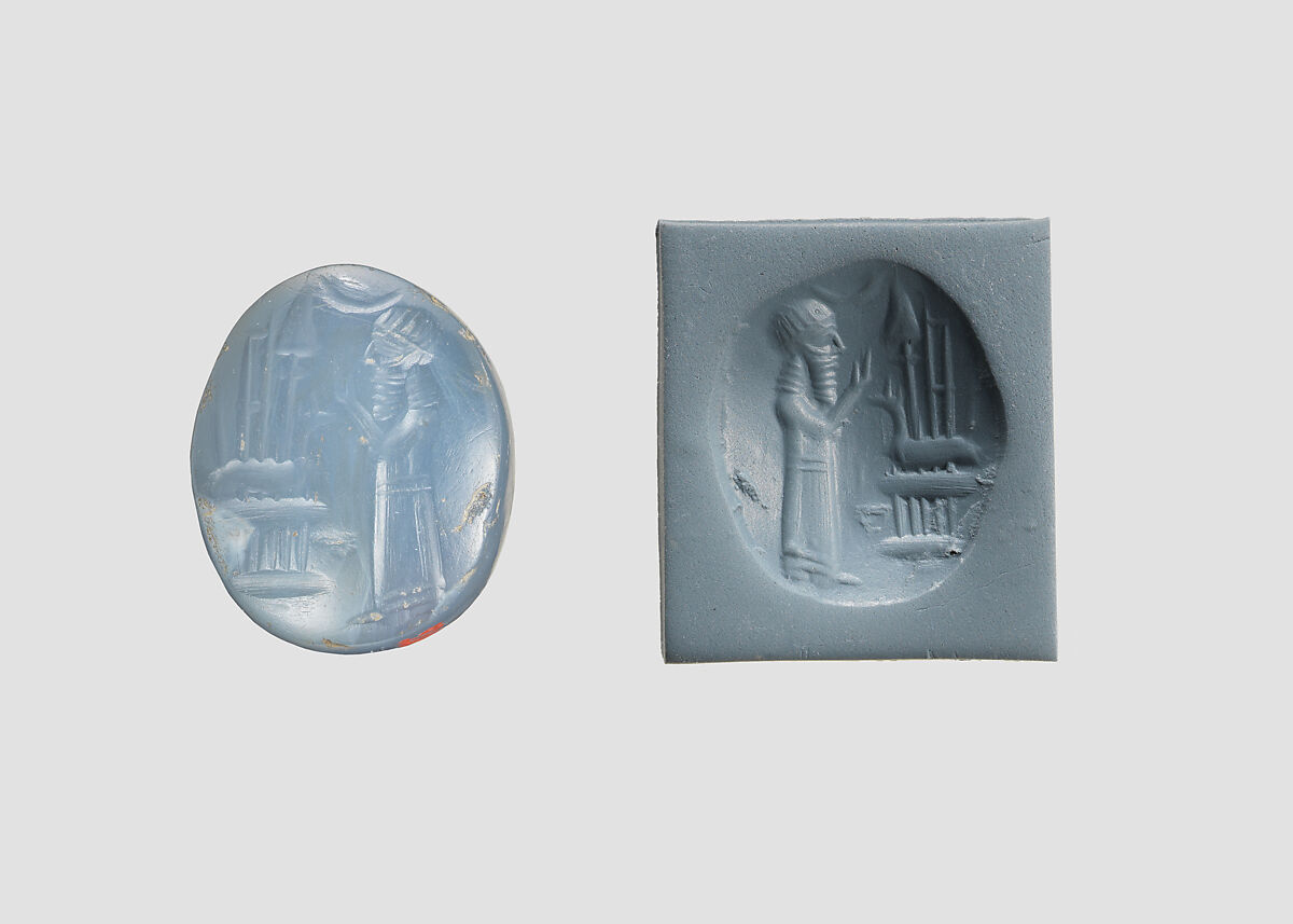 - Title: Stamp seal (oval conoid) with cultic scene