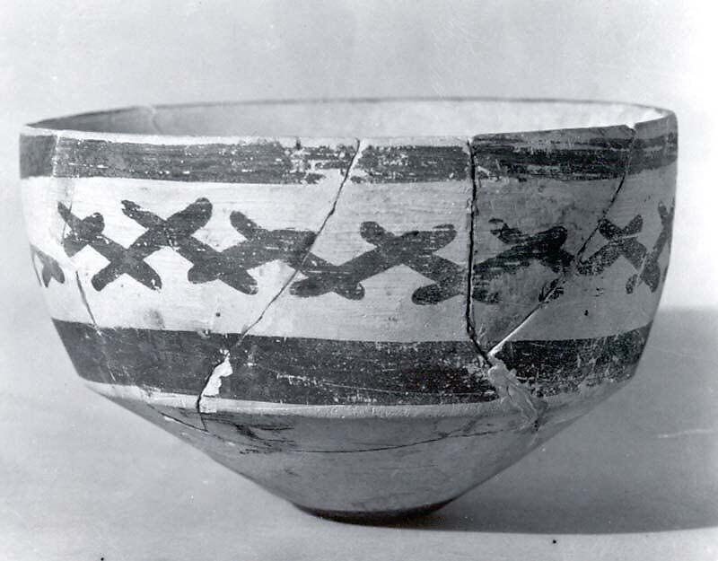 This bowl was excavated in 1932 at Tall-i Bakun A in southwestern Iran, a prehistoric site near Persepolis. During the fifth millennium B.C. Bakun was a hub for trade between pastoral nomads who raised sheep and goats in the highlands and the farmers who raised barley, wheat and peas in the Marvdasht Plain. As a result it grew into a major administrative center, as attested by the many stamp seals found there. It was also where much of the pottery used by the pastoralists was made, including this bowl. Although it has a flat bottom, the bowl was probably used with a stand, as several have been found at Bakun. This would have made the bowl easier to use on rough terrain, even if it meant more to carry. Given its size the bowl was most likely a drinking cup, though it is unclear what was drunk from it.