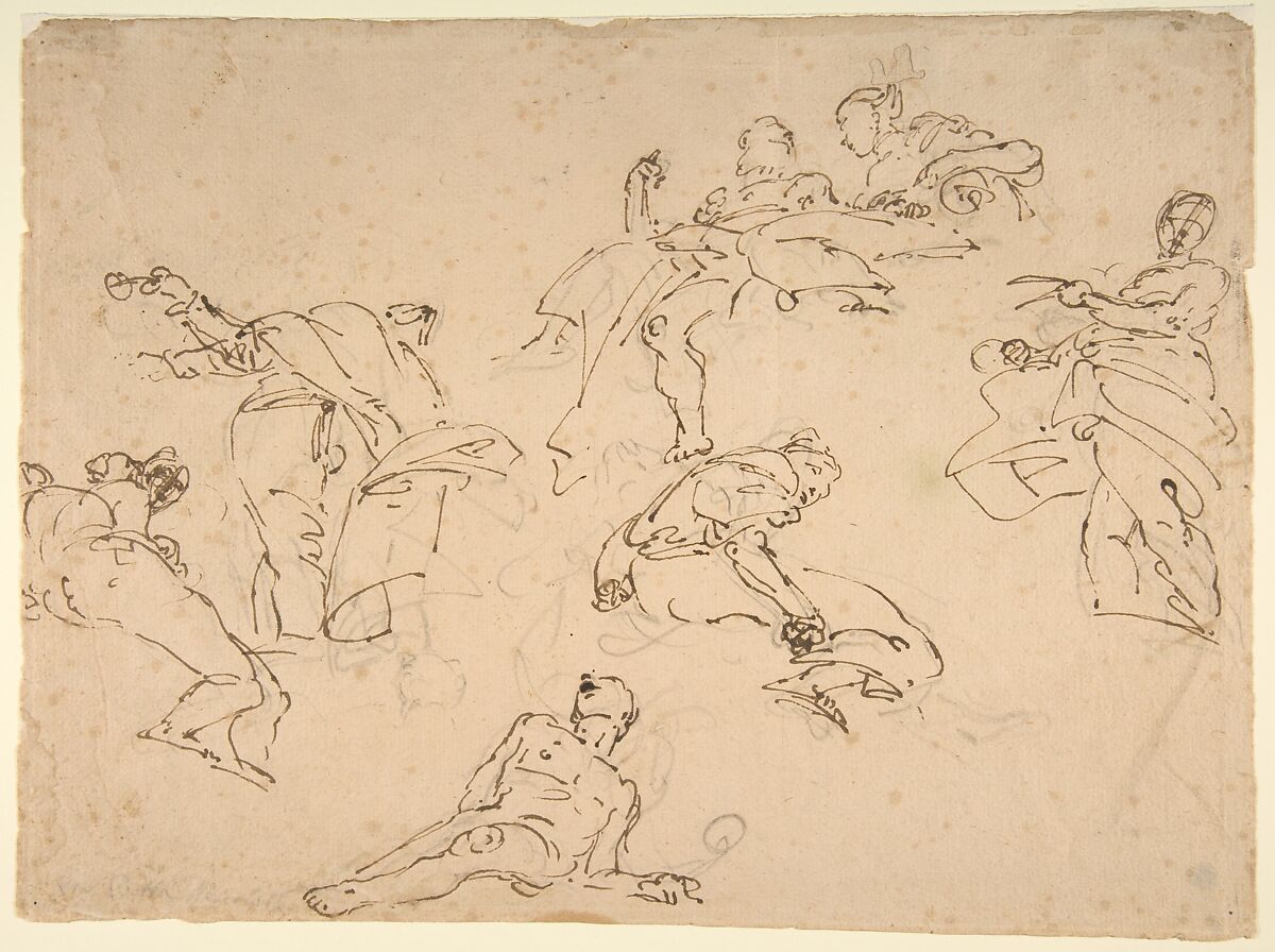 - Medium: Pen and brown ink, over black chalk, on beige paper