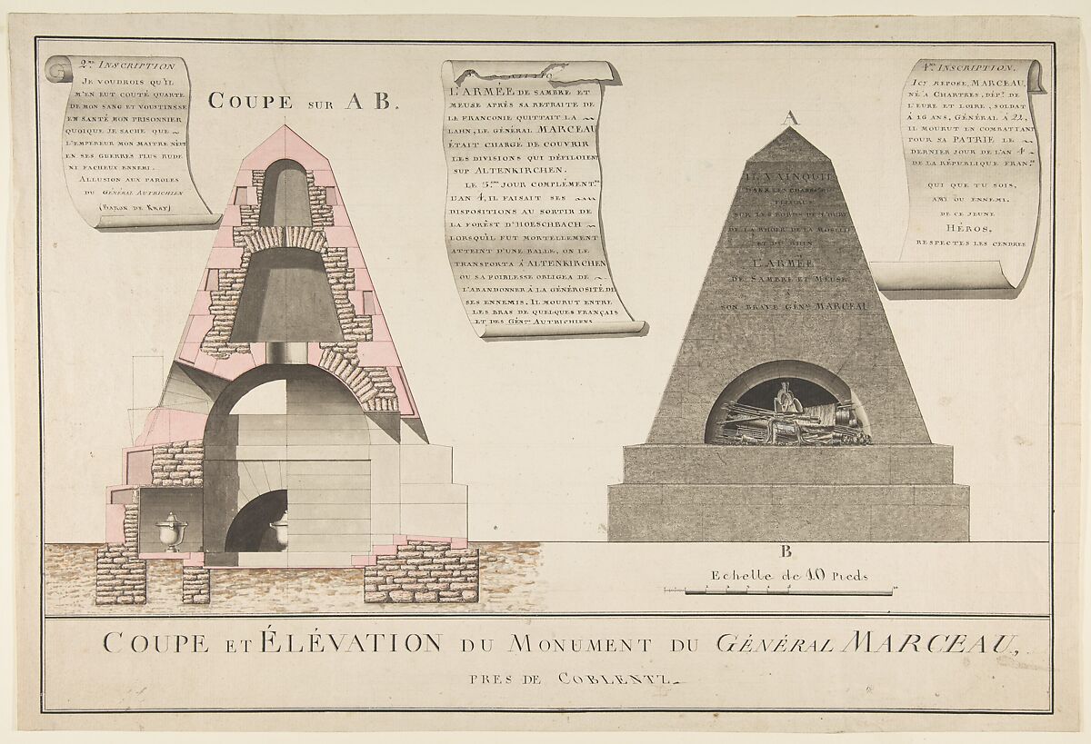 • Title: Cross-Section and Elevation of the Funeral Monument for General François Séverin Marceau (1769–1796)