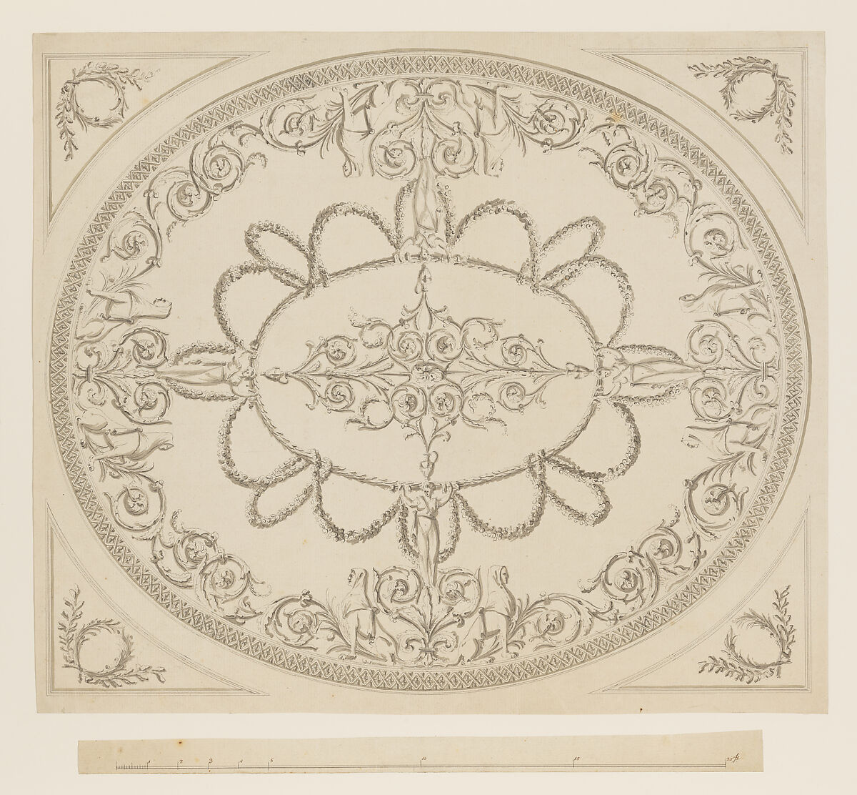 - Title: Design for a Ceiling, an Oval within a Square, having a Criss-cross Border to the Oval, for Ampthill Park, Bedfordshire