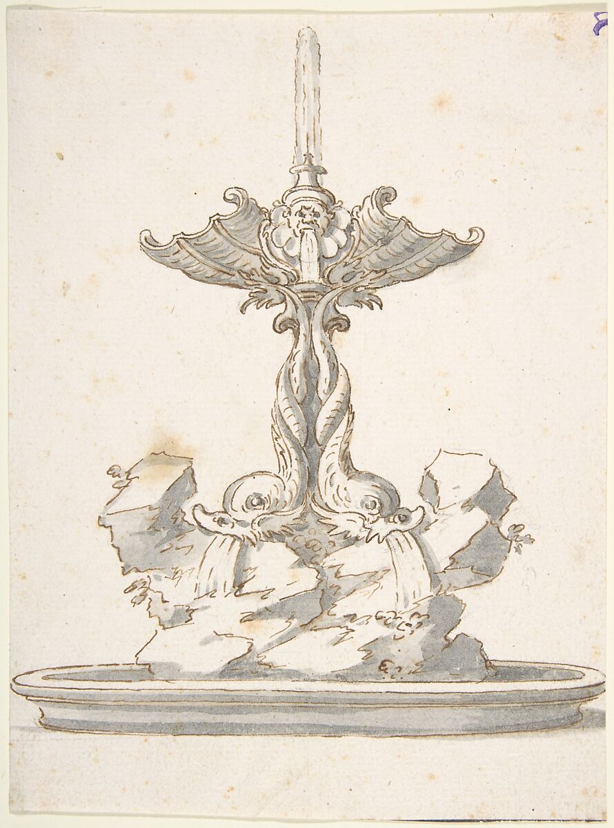 • Title: Design for Fountain with Dolphins and Grotesque Head