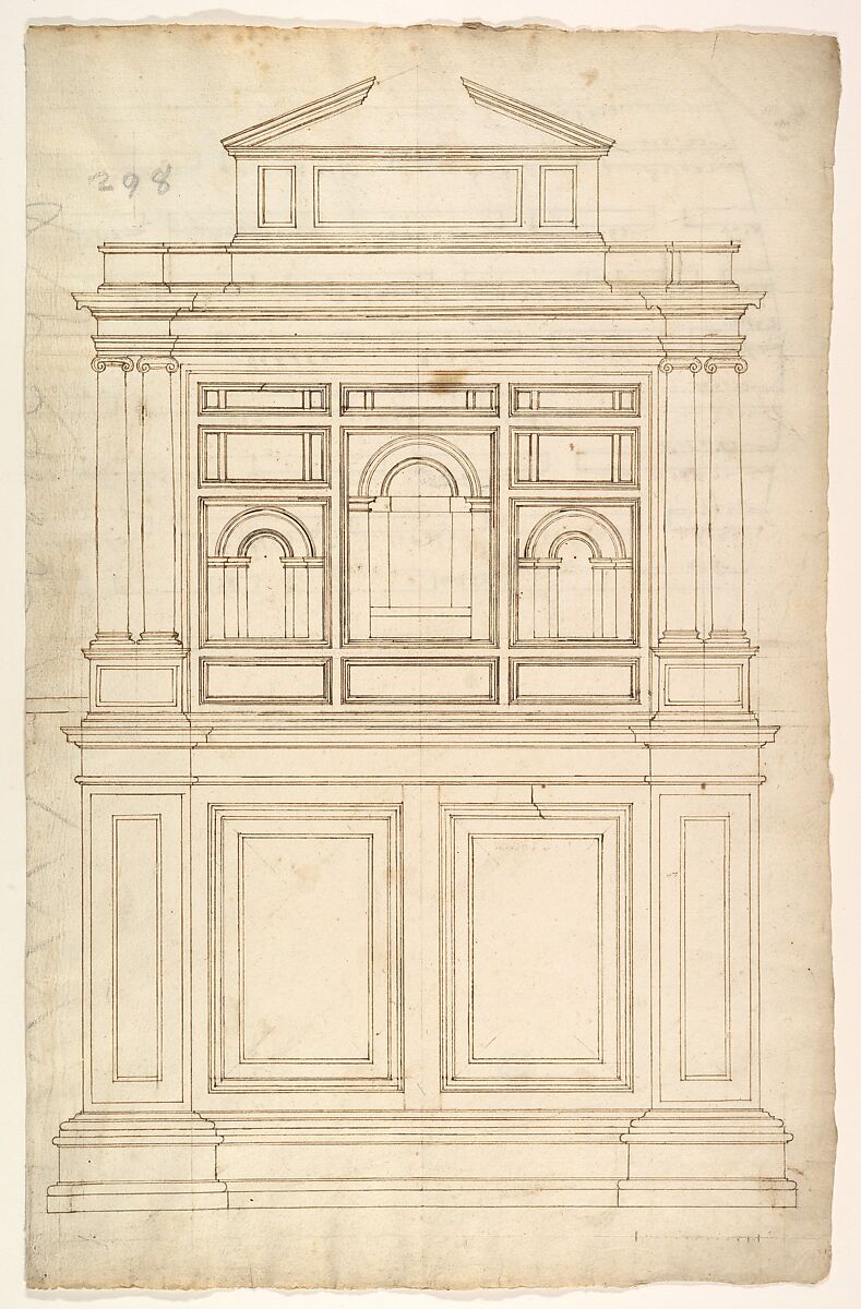 Court Cupboard (recto); Half-page of rectangles, numbered and lettered (verso)