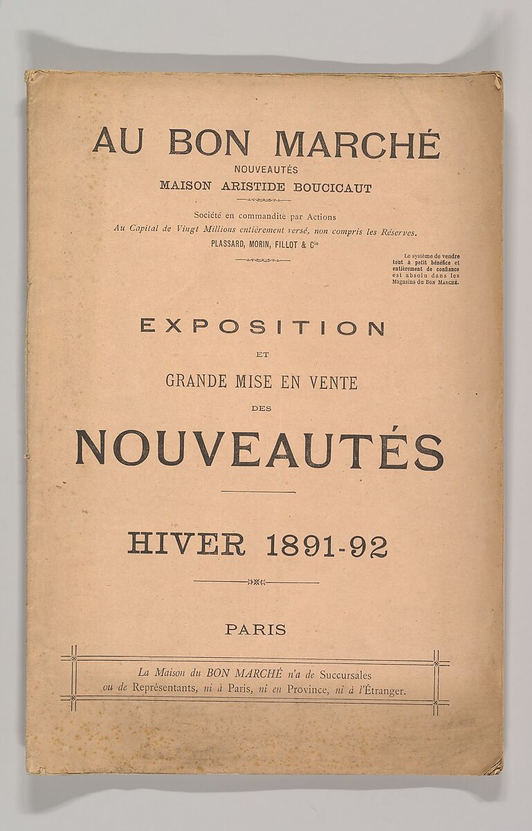 - Title: Au Bon Marché-Exposition et Grande Misé en Vente des Nouveautés Hiver 1891–92