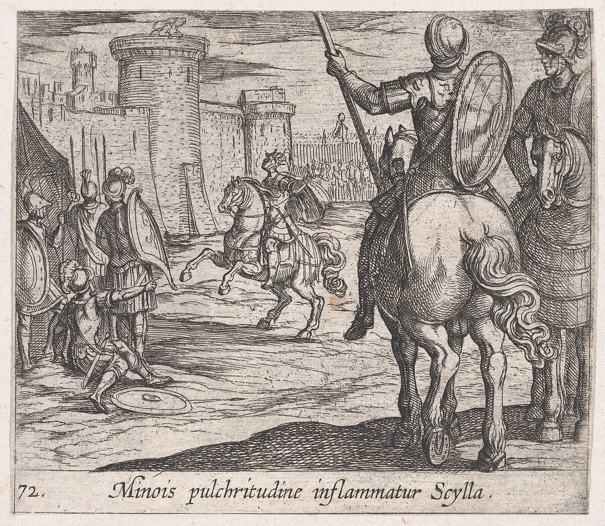• Title: Plate 72: Scylla Watching Minos from the Castle Walls (Minois pulchritudine inflammatur Scylla), from Ovid's 'Metamorphoses'