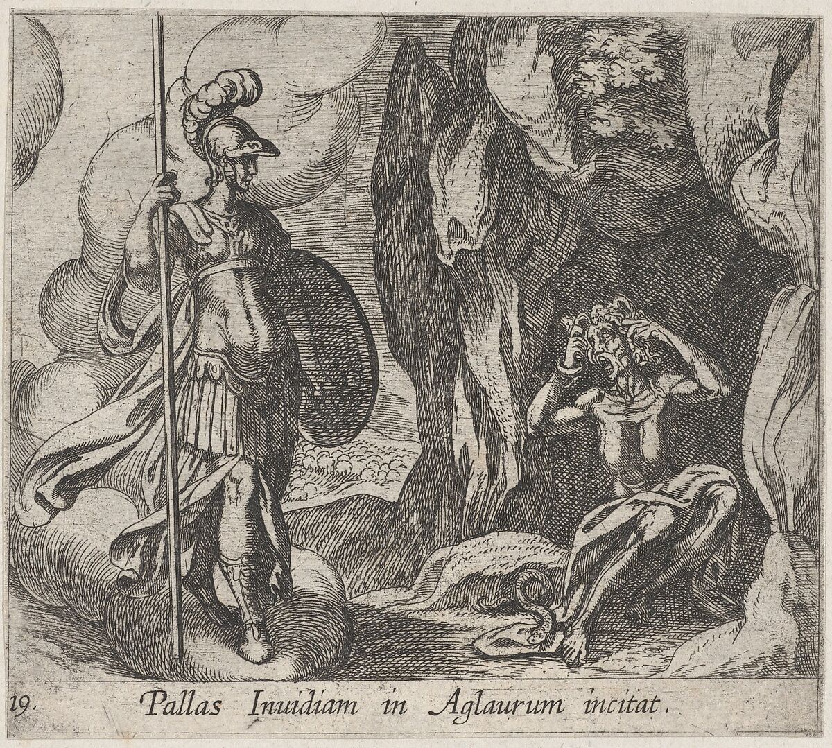 • Title: Plate 19: Minerva at Envy's Cave (Pallas Invidiam in Aglaurum incitat), from Ovid's 'Metamorphoses'