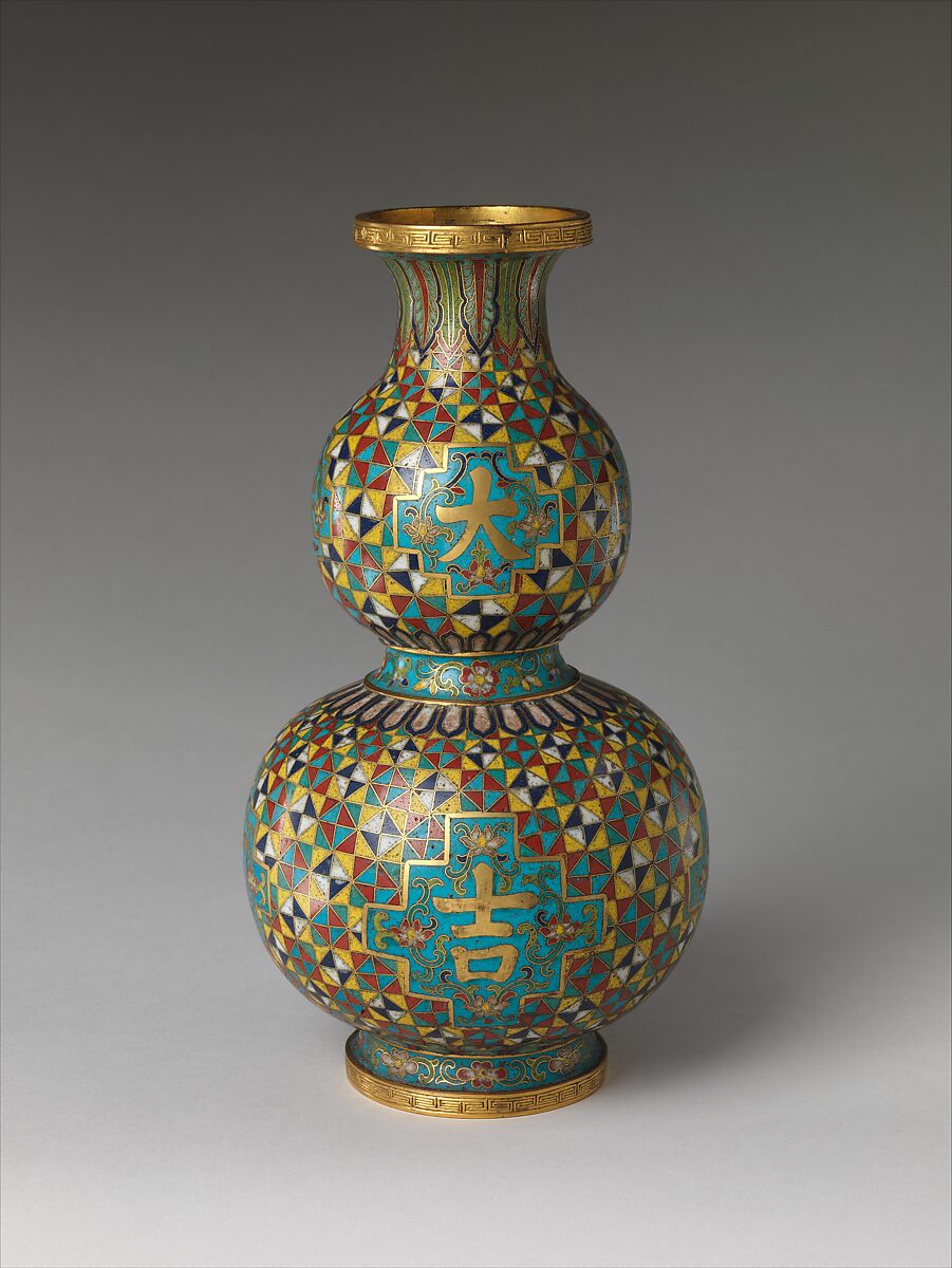- Title: Gourd-shaped vase with characters for “grand luck” (da ji)