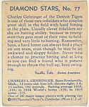 • Title: Charlie Gehringer; verso: Diamond Stars, No. 77 (1935 Averages)