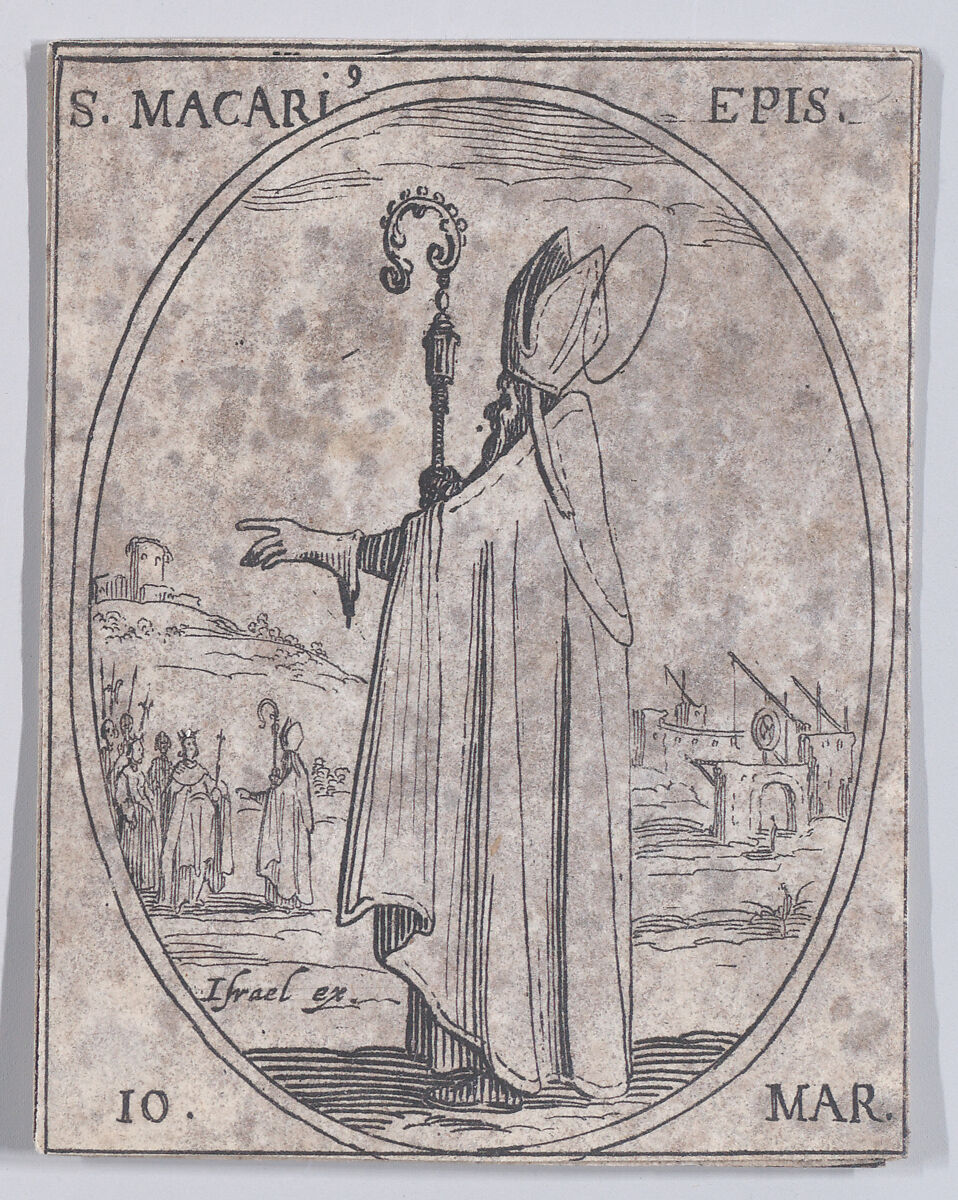 - Title: S. Macaire, évêque (St. Macarius, Bishop), March 10th, from "Les Images De Tous Les Saincts et Saintes de L'Année" (Images of All of the Saints and Religious Events of the Year)