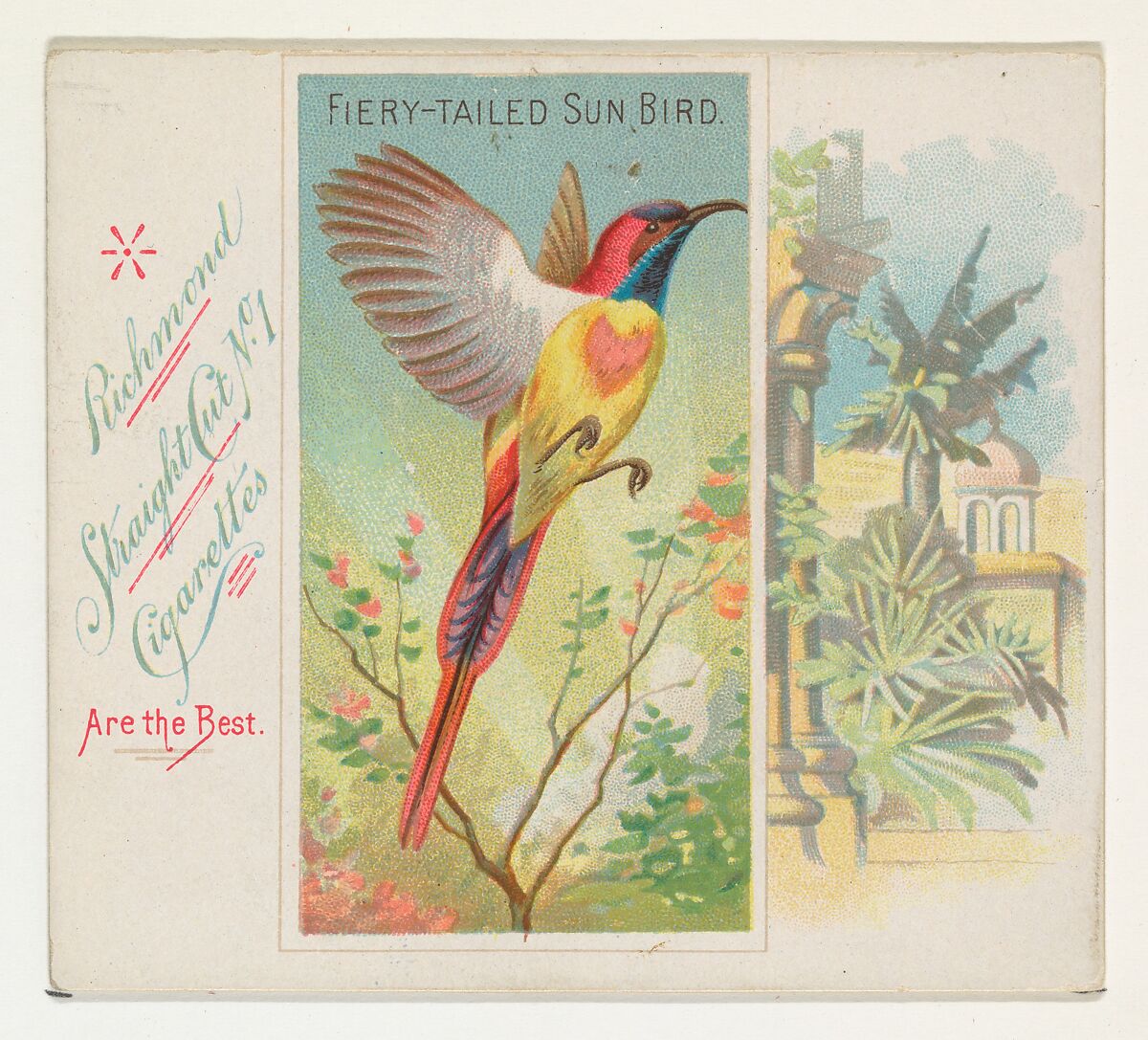 - Title: Fiery-Tailed Sun Bird, from Birds of the Tropics series (N38) for Allen & Ginter Cigarettes