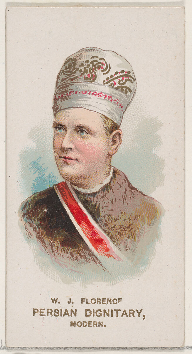 - Title: W.J. Florence Dressed as Modern Persian Dignitary, from the set Actors and Actresses, Second Series (N71) for Duke brand cigarettes