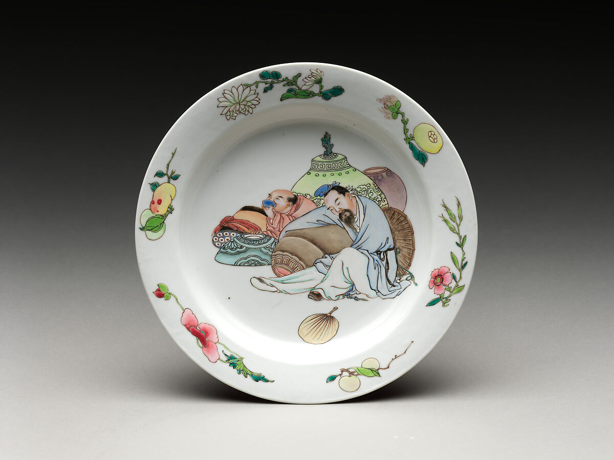 - Medium: Porcelain painted with overglaze polychrome enamels (Jingdezhen ware)