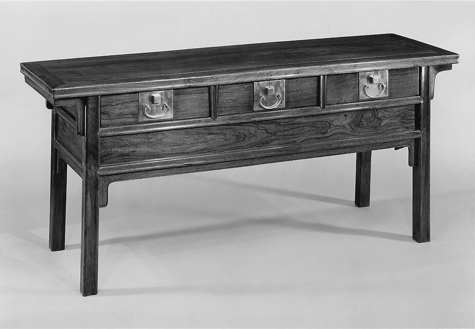 This coffer originally served as an ancestral altar. The undivided compartment beneath the three drawers provided storage space for hanging scrolls and other long objects related to ancestral worship.
