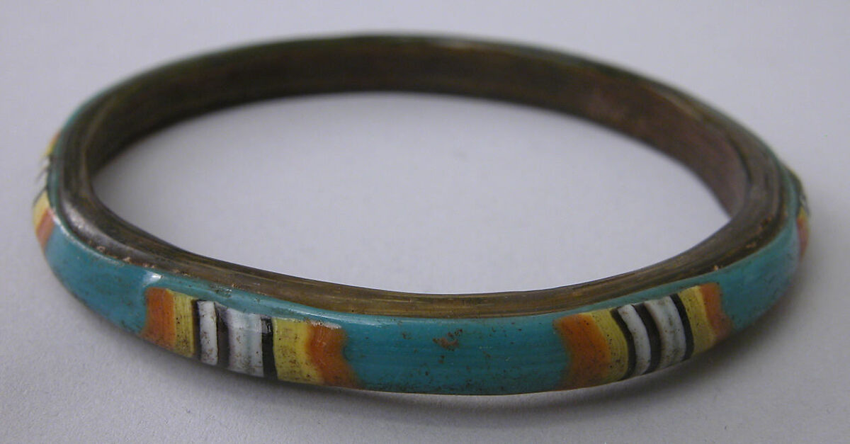 The earliest known examples of this type of seamless mosaic glass bracelet are from the late thirteenth century; it continued to be produced well into the nineteenth century at Hebron, in Palestine. This bracelet, together with thirty-three others in the collection, comes from UpperEgypt and was probably made during the Mamluk period.
