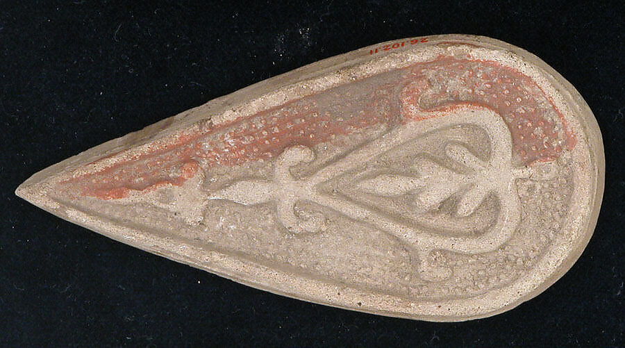 - Medium: Earthenware; unglazed, molded in relief, painted red