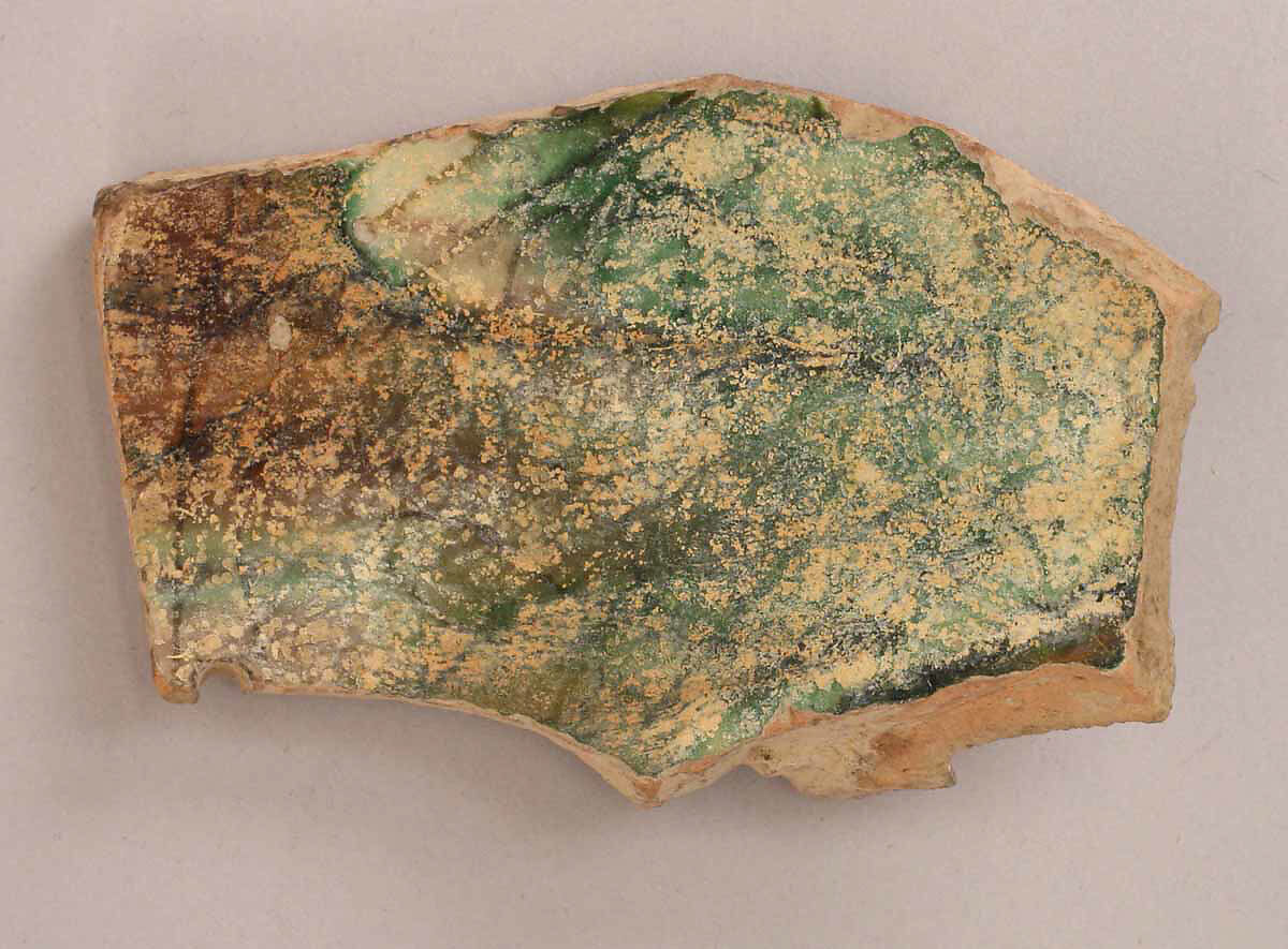 This ceramic fragment was excavated in Ctesiphon, the Sasanian metropolis and administrative capital conquered by Arab Muslim armies in 637. The city continued to be inhabited throughout the era, when it was known in Arabic as al-Mada’in, or "the cities", because of the expansive area it encompassed. Arab and Persian historians and poets indulged in describing al-Mada’in/Ctesiphon’s grand monuments. Muslim rulers also celebrated the glory of these monuments, which through time had acquired symbolic significance due to their association with the city’s imperial past. This was the case of the Taq-i Kisra, an impressive colossal ivan (a vaulted hall with one side open) that was partially dismantled to reuse its bricks in caliphal buildings in the new capital of Baghdad.