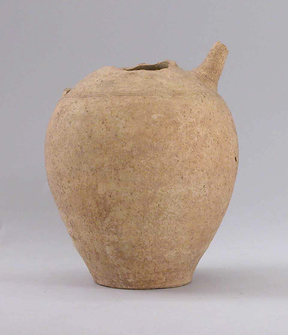 This ceramic jar was excavated a Qasr-i Abu Nasr, an archaeological site now attached to modern Shiraz in southern Iran. The small town and fortress were located at a strategic point at the intersection of protective mountains, water sources, and along roads entering the plain. The site was occupied, at least intermittently, from the Parthian period (3rd century B.C.–3rd century A.D.) to the Muzaffarid period (13th–14th century A.D.). The major occupation, including the extensive fortress, dates to the Late Sasanian period (6th–7th century A.D.).
