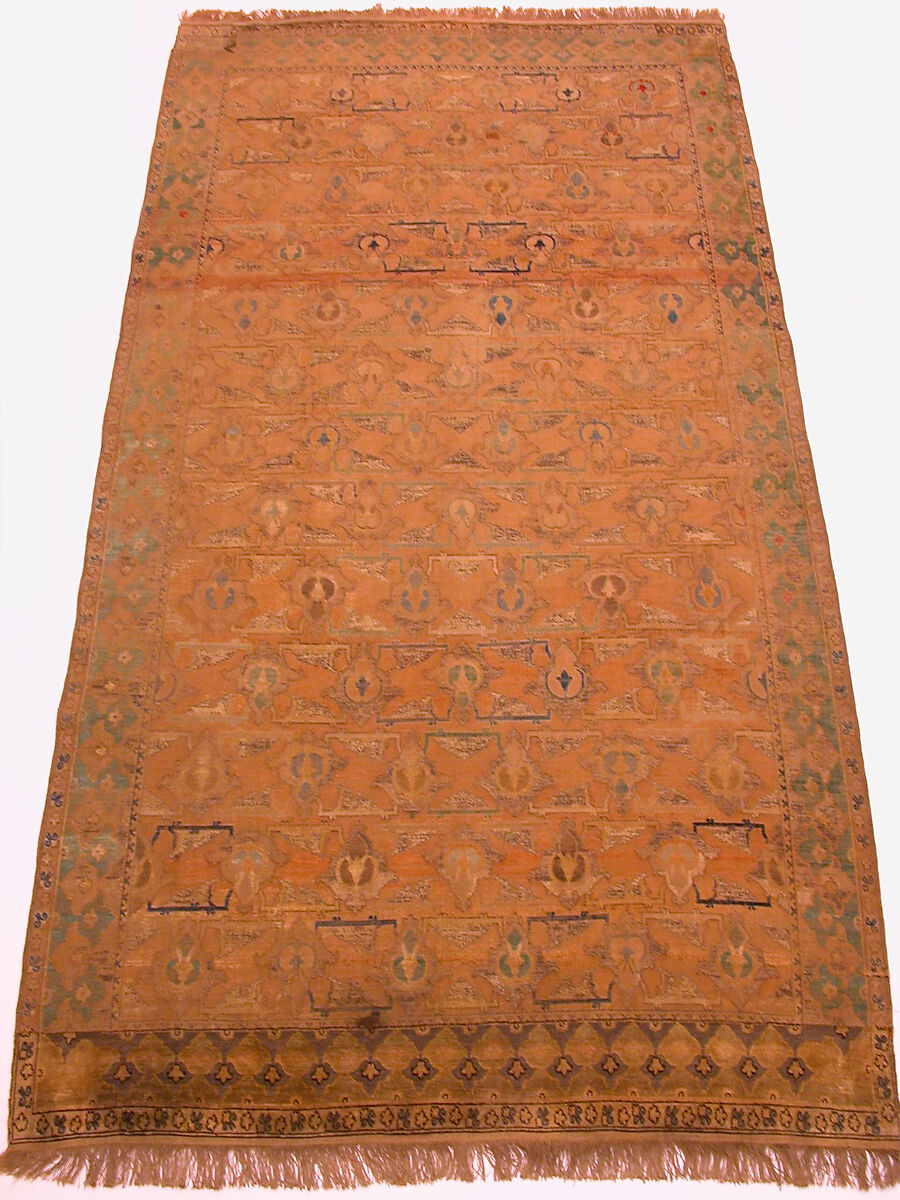 - Medium: Cotton (warp), silk (weft and pile), metal wrapped thread; asymmetrically knotted pile, brocaded
