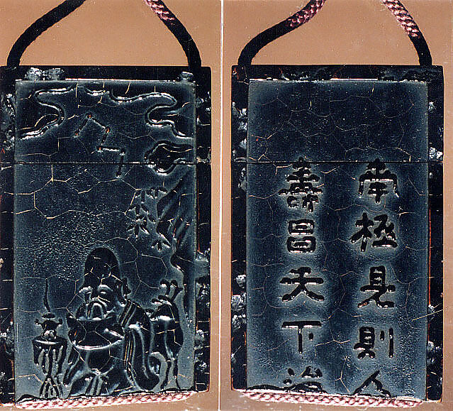 - Title: Case (Inrō) in the Shape of an Ink Stick with Design of God of Longevity (Jurōjin), Reading beneath a Star Constellation (obverse);Twelve-Character Inscription (reverse)