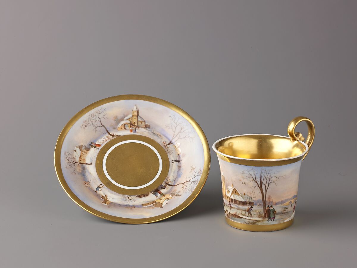 - Title: Cup and saucer with painted winter scenes