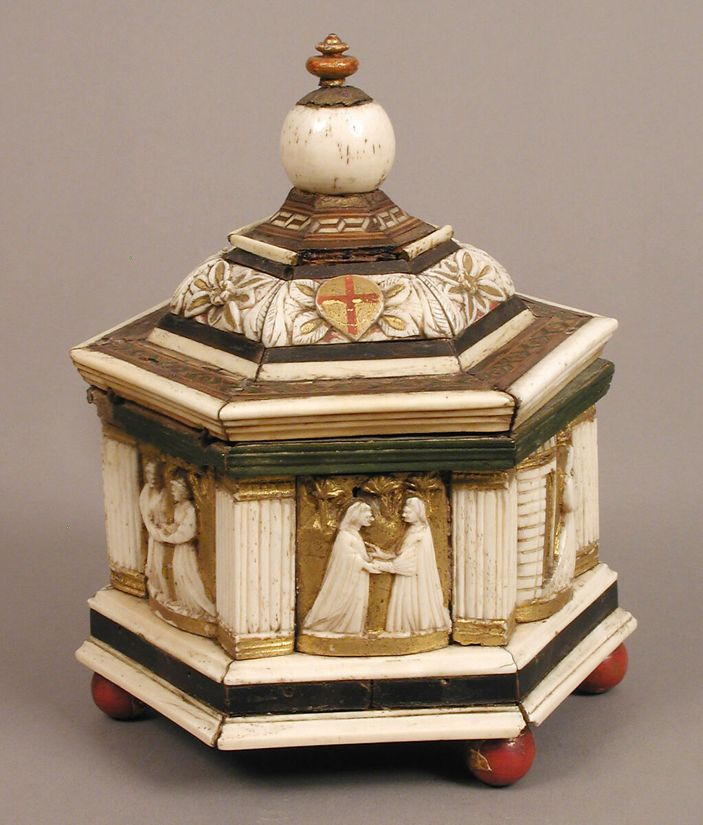 - Medium: Wood, bone, paint, gilding, iron, velvet, and metal-wrapped textile