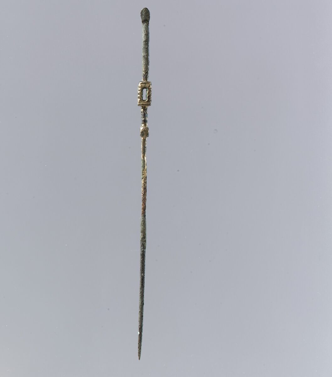 Pins were used to secure a veil or to hold a hairstyle in place. Most were made simply of copper alloy, sometimes tinned to look like silver, but some were elaborate objects, showcasing an array of metalsmithing techniques.