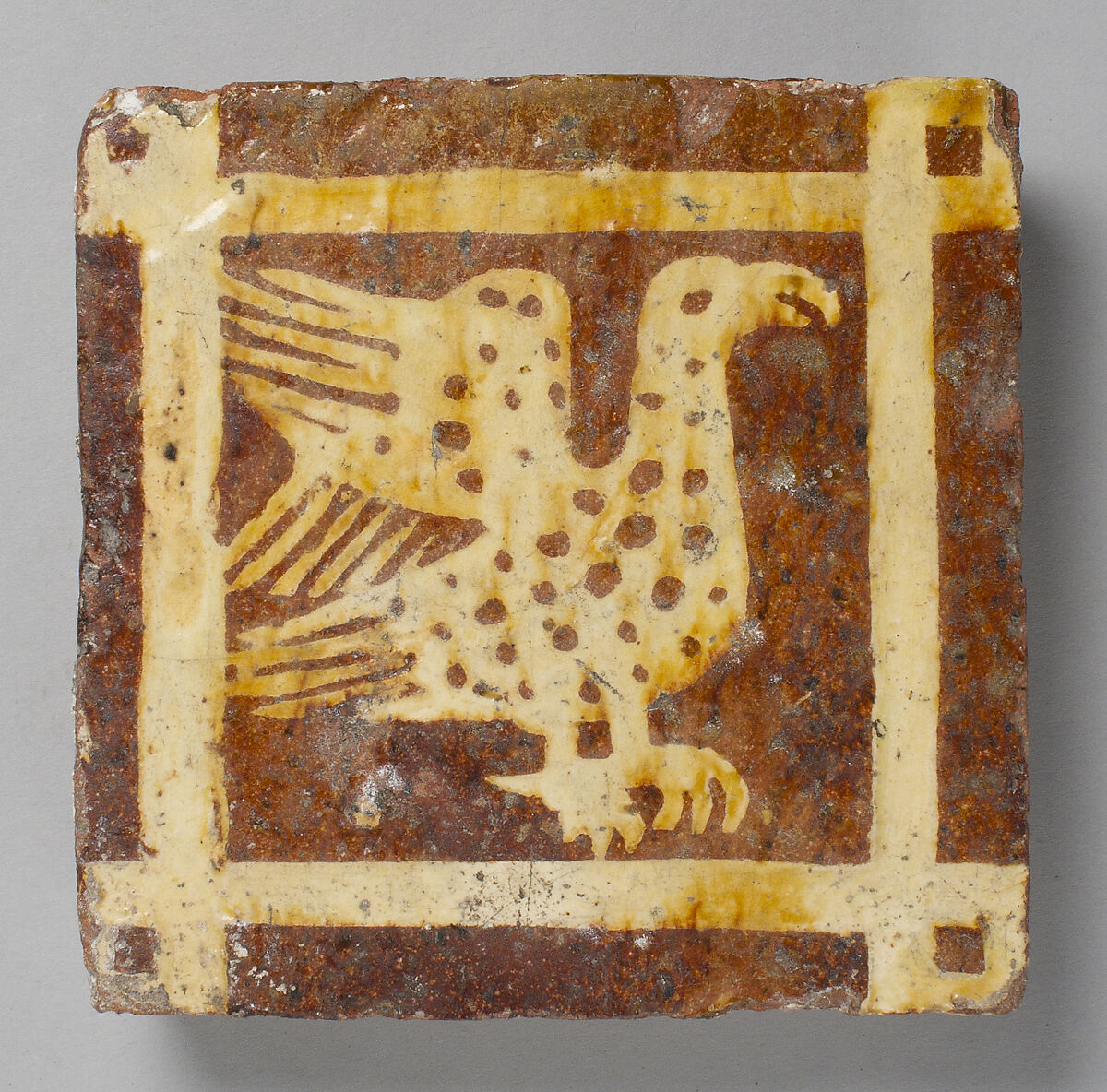 - Medium: Fired earthenware with slip decoration and lead glaze