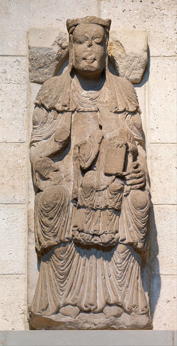 The story of the magi (wise men) offering gifts to the newborn Jesus was among the most popular of biblical subjects decorating northern Iberian churches in the later twelfth century. These sculptures (see also 30.77.6–.7, .9) typically portray the scene as a courtly encounter. Here, Mary and her infant son sit enthroned underneath an honorific canopy. Two magi (once accompanied by a now-lost third magus) approach mother and child with reverent postures. All of the figures’ voluminous garments help to convey the richness of the scene, evoking the setting of a foreign delegation’s visit. At odds with the humble setting of Jesus’ birth, this elevated portrayal serves to celebrate the event. The dozing figure at right is Joseph, husband of Mary and foster father of Jesus. His slumber alludes to his prophetic dreams, described in the Gospel of Matthew, which enabled him to protect his family. Sometime in the 1920s, these sculptures were photographed set into a side wall of the church of Our Lady of the Plain at Cerezo de Río Tirón, which had been abandoned at the end of the eighteenth century. Originally, the sculptures may have been located over the church’s main door.