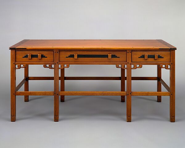 Charles Sumner and Henry Mather Greene, two brothers, were West Coast architects who developed an elegant regional version of the Arts and Crafts style. Furnishings of the Robert R. Blacker house in Pasadena, California (extant, though altered), an early commission with a lavish budget, included this living-room table and the dining-room armchair, one of two. Both pieces were conceived en suite with the woodwork and furnishings of the rooms; they exemplify the fine craftsmanship, rich materials, delicate detailing, and Asian influence that characterize the custom-made furnishings that the Peter Hall shop manufactured to Greene and Greene's designs.