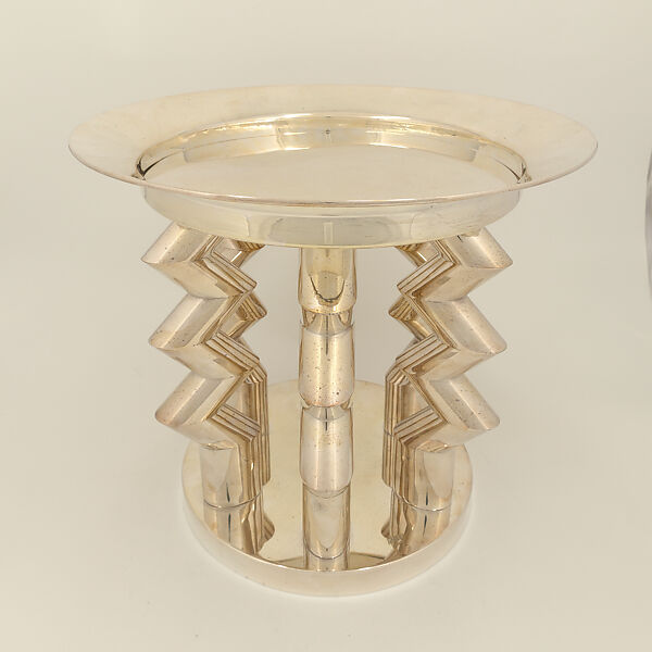 Produced for Memphis, the group of Italian designers and architects formed in 1981 to create alternatives to the prevailing modernism of the postwar era, this centerpiece is an example of Sottsass’s designs that engage the user. Is Murmansk a reference to the city in Russia? Are the zigzag columns a reference to Russian steppes? Or is the manipulation of the silver simply a subversion of a traditional columnar form? The refraction of light permitted by the zigzag forms distorts the reflected images in the manner of a fun-house mirror, elevating the fruit bowl to the iconic status of Pop art.
