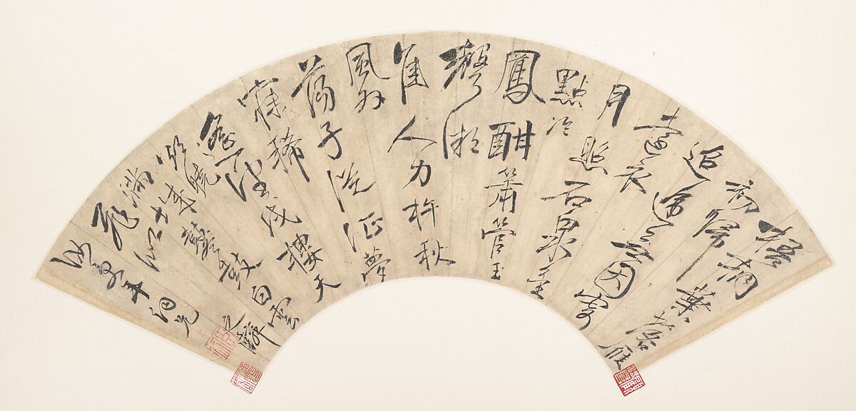 - Medium: Folding fan mounted as an album leaf; ink on mica-flecked paper